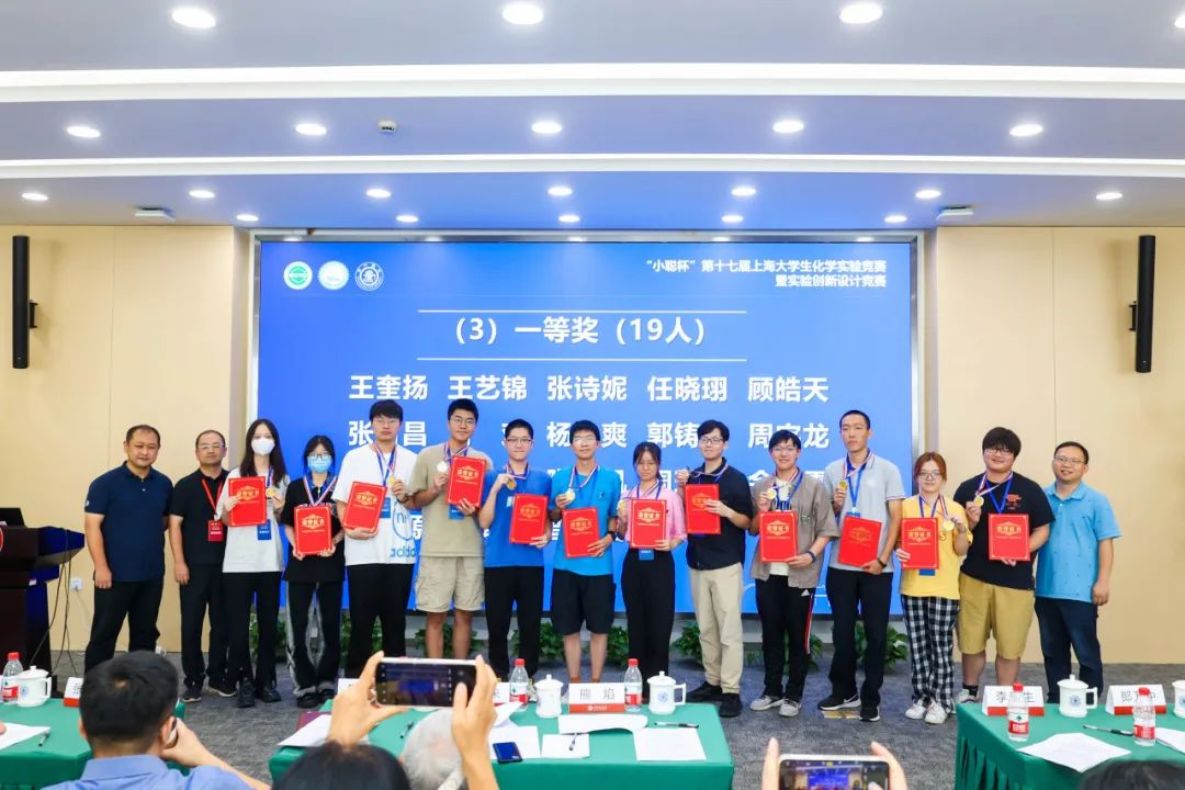 经过两天激烈比拼,化学实验竞赛共评出特等奖10人、一等奖19人、二等奖19人、优秀奖9人;化学实验创新设计竞赛评出特等奖4组、一等奖8组、二等奖9组;6人获“优秀指导老师”称号,1人获“特别贡献奖”。