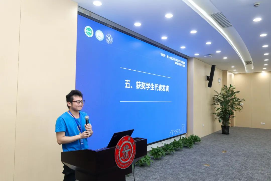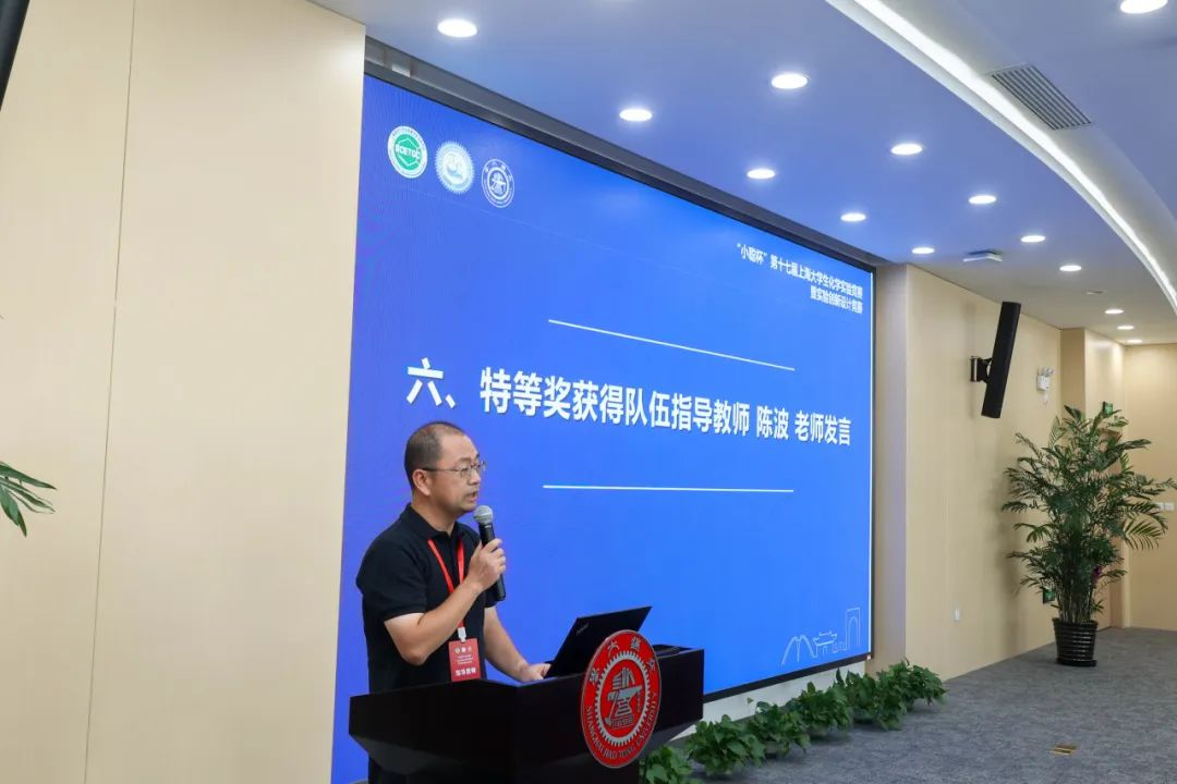 随后,赞助商代表上海小聪科技有限公司总经理杜海涛介绍了公司基本情况,祝贺大赛圆满完成。同济大学本科生韦宇韬作为学生代表、华东师范大学陈波作为指导教师代表依次发言,分享竞赛体悟和心得;上海理工大学材料与化学学院院长李贵生教授作为下届竞赛承办单位介绍了学院基本情况并表示将竭尽全力做好下届竞赛的筹办工作。