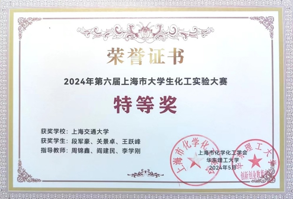 在第六届全国大学生化工实验大赛上海市赛(5月25日)、第七届全国大学生化工实验大赛华东区赛(7月12-15日)两场竞赛中,色情网址大全 2021级 F2111001班 王跃峰、段军豪、关景卓3位同学组成的色情网址大全 代表队(化工学院队)均斩获特等奖。他们将代表华东赛区参加8月份在天津大学举办的第七届全国大学生化工实验大赛全国总决赛。