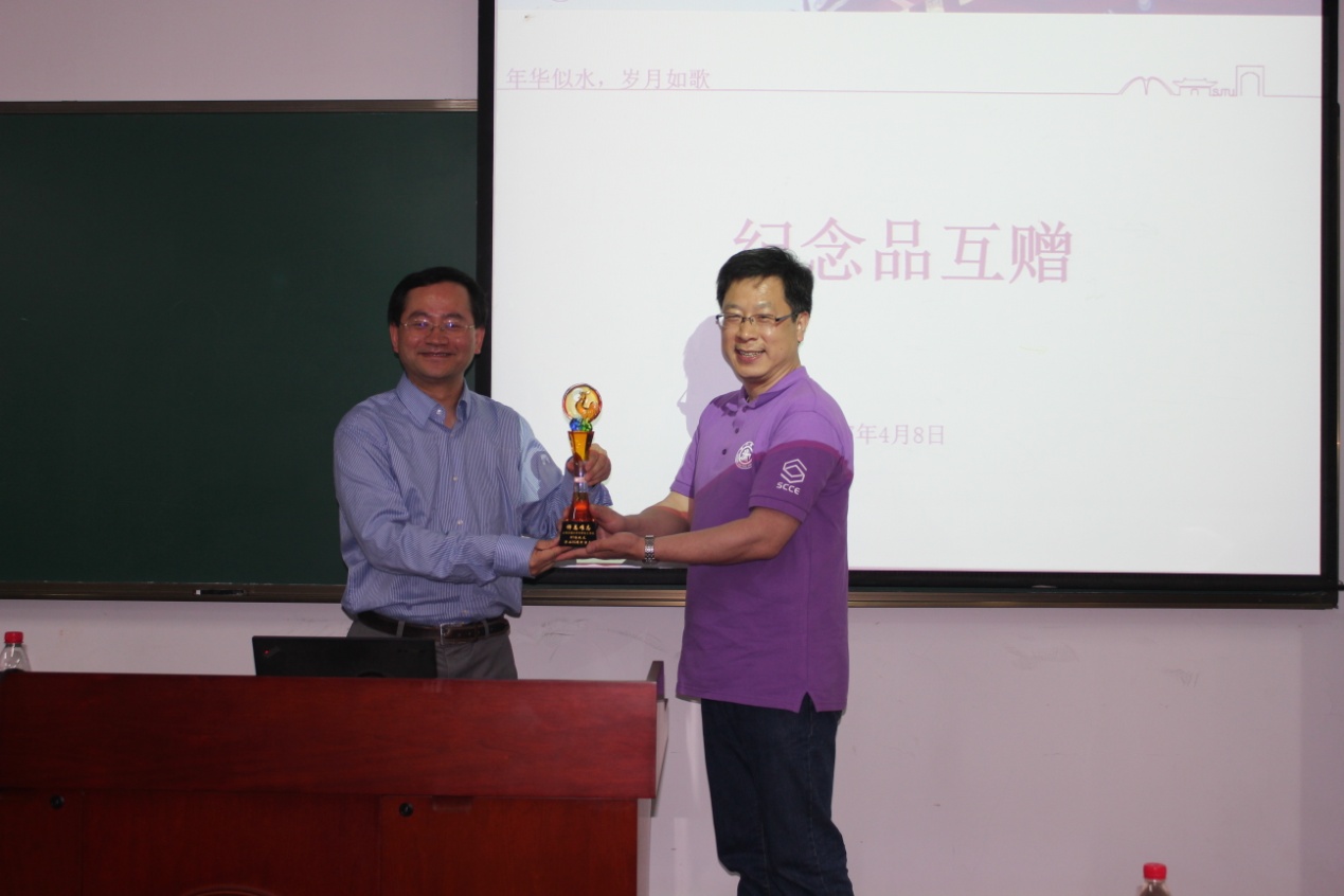 党委书记朱新远、党委副书记郑浩参加1987届校友毕30年座谈会和1997届校友毕业20年座谈会,会议分别由李剑和余晴春主持。会上,朱新远书记分别从发展历史、楼宇规划、科研成果、人才培养等进行介绍,化工学院精心准备感人视频和“纪念版学生证”,当年的老师深情回忆与学生一起的美好时光。校友向当年的授业恩师赠送了礼物。