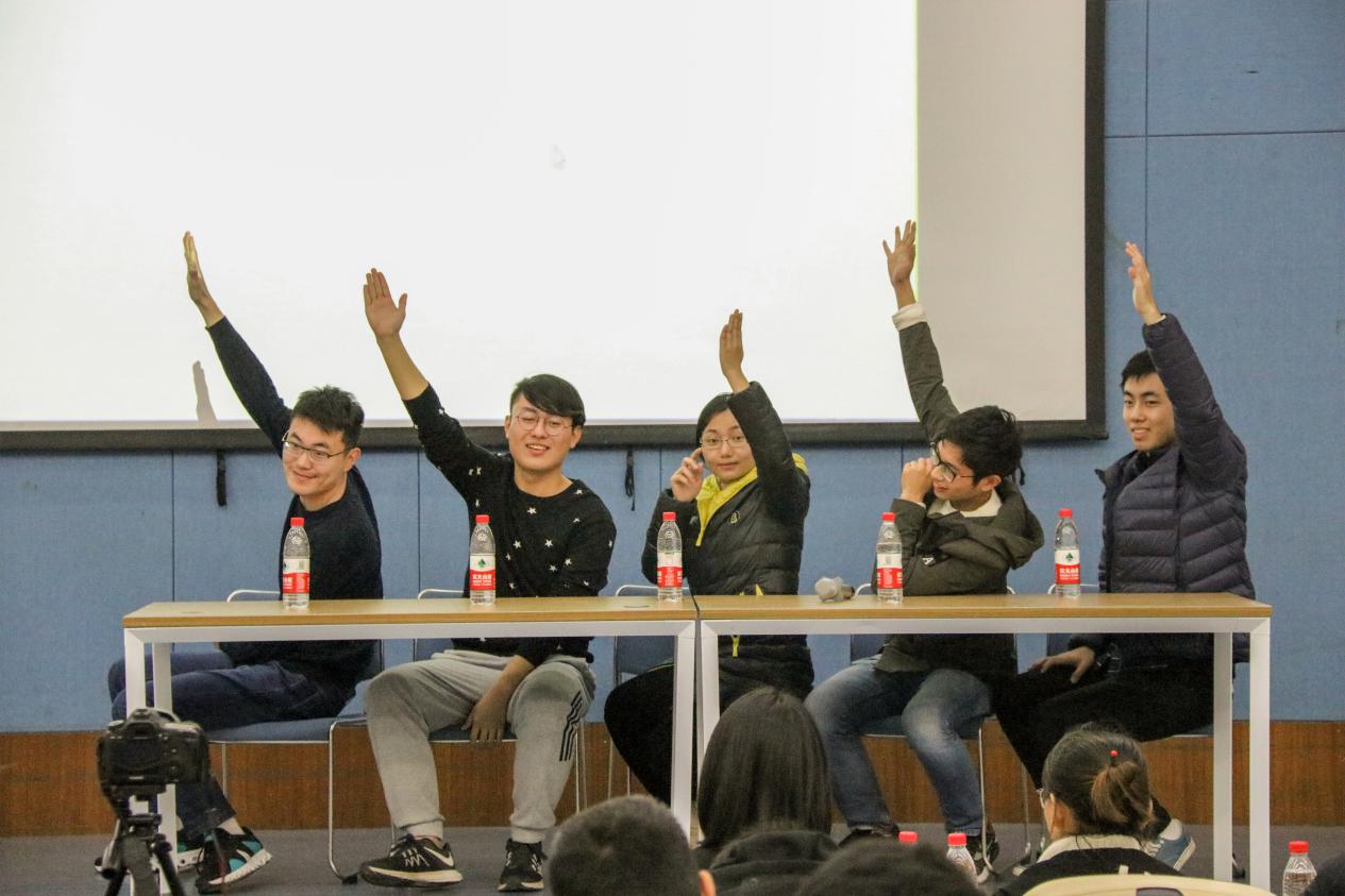 最后一个环节是红歌演唱,经过破冰的磨合以及排练,同学们精彩的合唱赢得了场下的阵阵喝彩。闫成老师为大家的歌声做出了精彩的点评,为活跃气氛,他还出了一道和十九大报告相关的军事题,军事迷们兴高采烈!