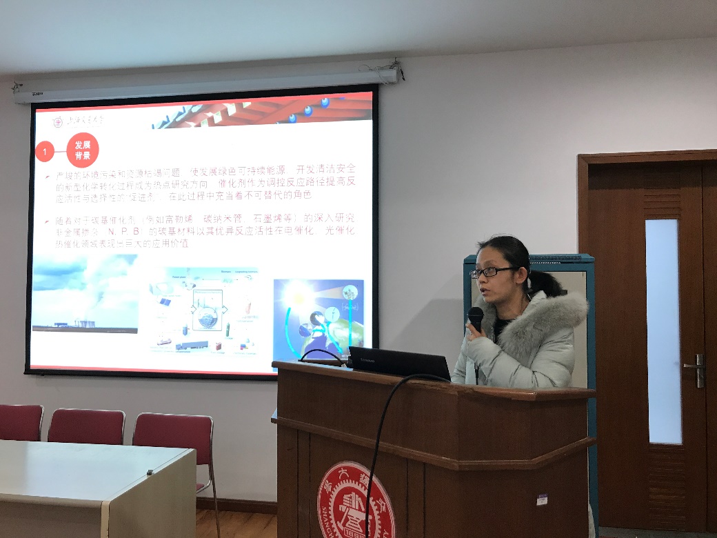 苏慧同学为大家展示了《碳基过渡金属复合材料在多相催化领域的研究》,以其自身体验为大家分享了科研中的酸甜苦辣,在科研中可能遇到攻克不了的难关,以及在连续长时间得不到理想的结果的情况下,要学会调节自己的心态。