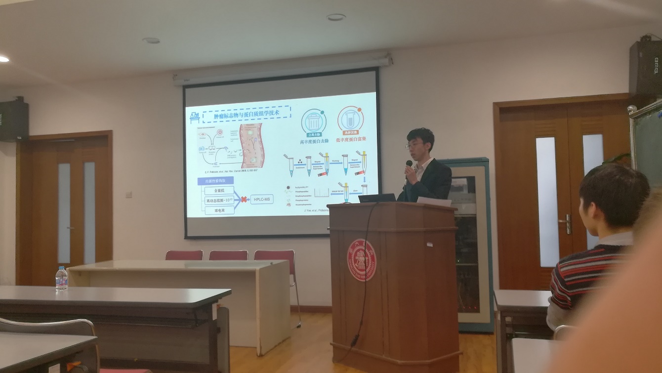 复旦大学化学系姚继宗同学通过其分享《基于功能化纳米材料对内源性修饰肽的分离分析》,从内源性磷酸化肽的选择性富集与糖基化多肽的选择性富集两部分,为同学们介绍了一种肿瘤标志物筛选的技术开发路线,让我们看到了功能化纳米材料在分析化学中的应用前景,同时也感受到了姚同学严谨求实刻苦钻研的科研精神。