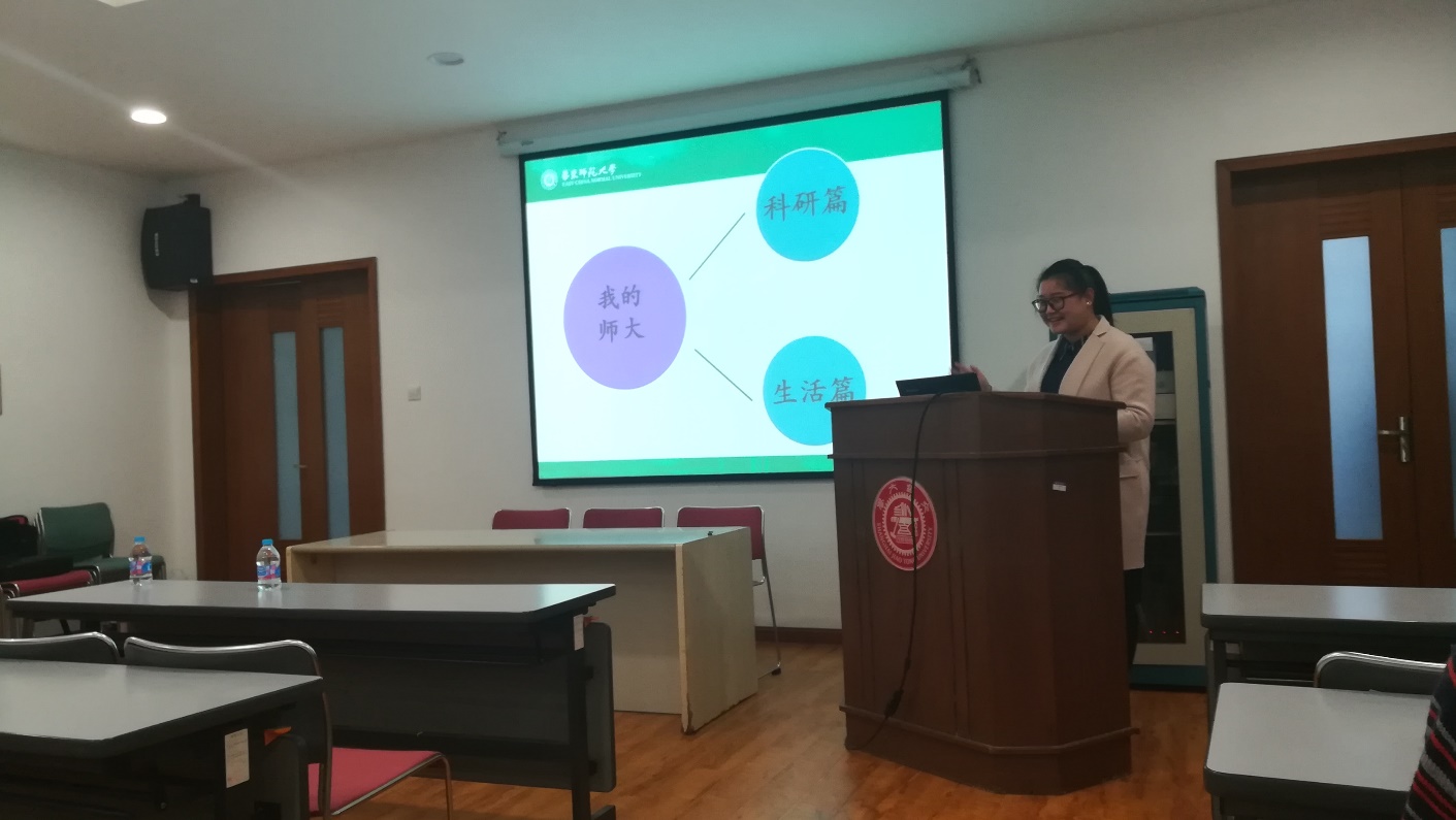 华东师范大学化学与分子工程学院研究生会主席郑桂华作工作交流报告