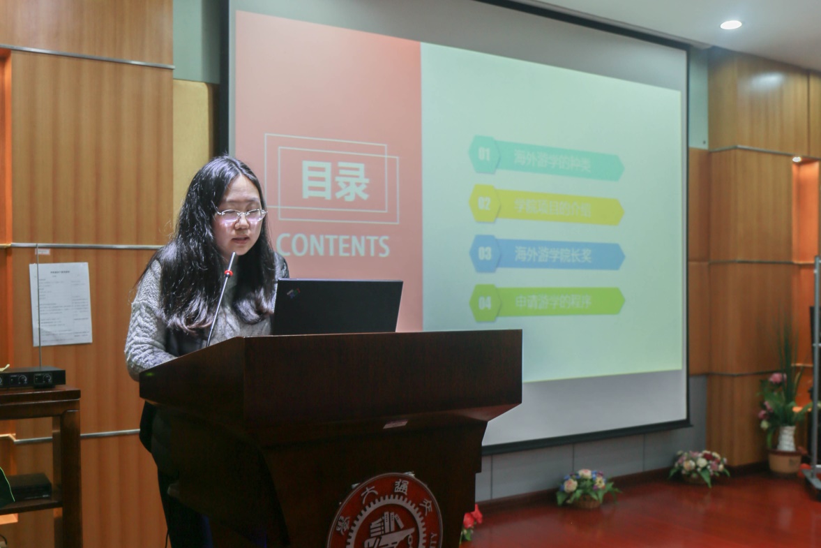 第一板块是出国研修交流。首先,胡筱可老师向同学们进行了海外游学信息的分享。胡老师不仅向同学们介绍了色情网址大全
