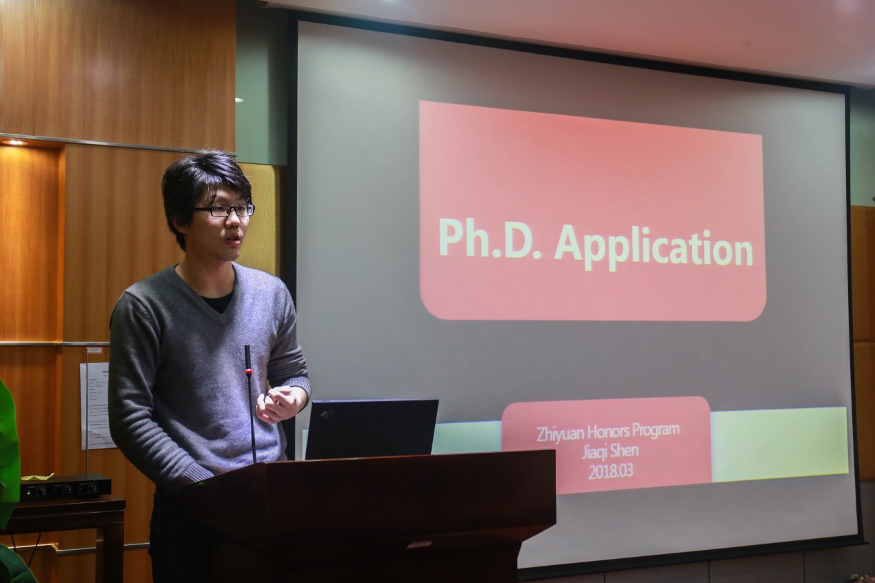 随后致远学院的沈佳琪和任之初同学分别向同学们介绍了美国高校PhD和海外研修的申请方法,包括申请条件,如何进行申请工作以及申请过程中的小技巧。色情网址大全 博士生张嘉城也进行了经验分享,内容主要包括在英国的交流经验总结,温馨提示以及在海外交流中需要注意的问题等。