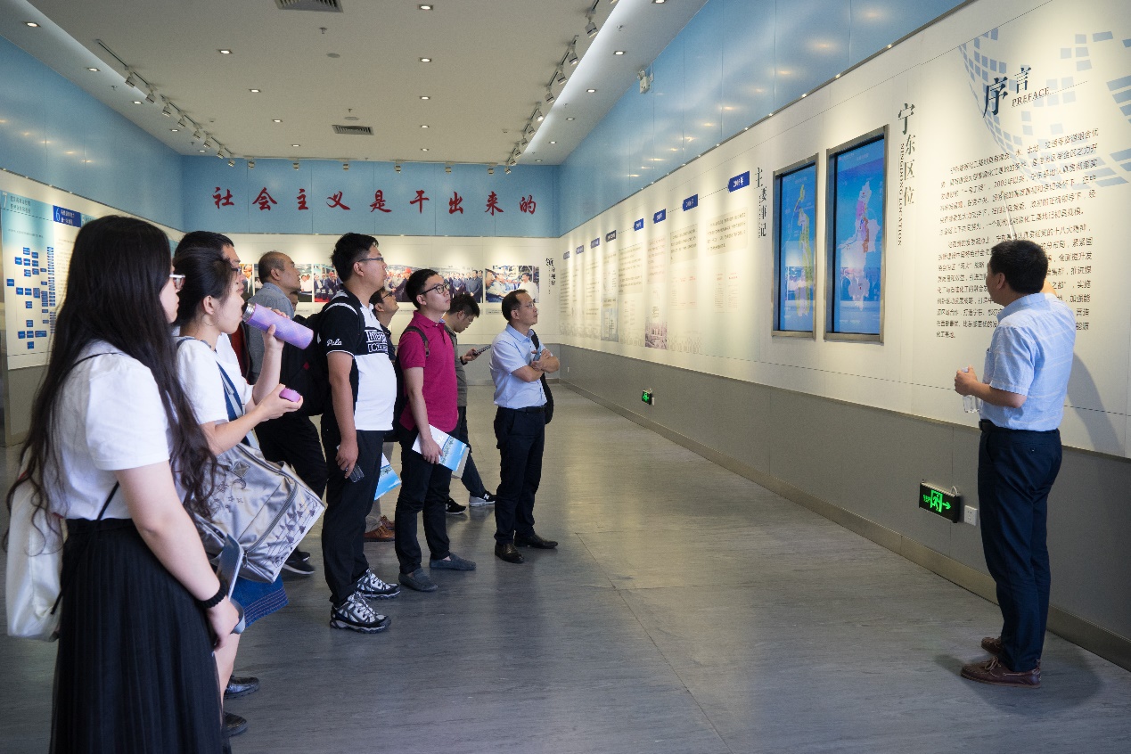 神华宁煤集团是最先入驻宁东基地的企业,以煤炭和煤制油化工为主营业务。集团下属煤炭化学工业技术研究院院长金政伟带领到访师生参观了宁东基地展厅、煤制油产业园区及中央控制中心。金院长向同学们详细地介绍了宁东的开发历程、产业布局及神华宁煤的主打产品。大家无不惊叹于这片20年前仍是荒漠的土地,因煤炭资源宝藏而一跃成为占自治区工业产值近三成的经济支柱;从这里出发的西电东送输电网直通山东青岛,为东部地区的生产保驾护航。在煤制油中控大厅,每个生产装置的运转状况在巨大的屏幕上实时显示,近百名工作人员分成多组对其进行监控和调整。同学们大都是第一次观看到如此集高度智能化和庞大生产规模为一体的工业装置,深深被其中蕴含的科技所震撼。
