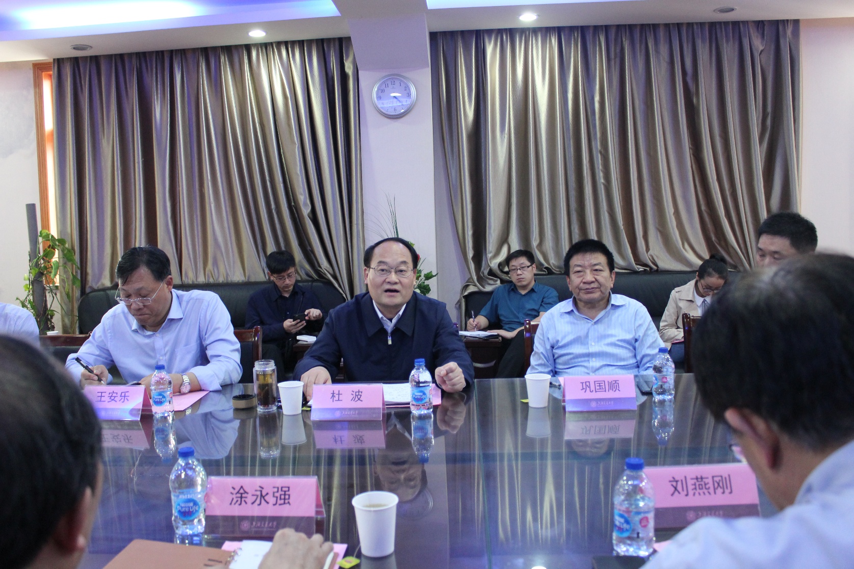 2019年4月24日,中国平煤神马集团总经理杜波一行9人莅临色情网址大全 交流访问。双方在色情网址大全 会议室进行了深入的交流座谈,座谈会由先进产业技术研究院院长刘燕刚主持,色情网址大全 院长涂永强院士出席并讲话,党委副书记阎文幡及部分教授参加座谈。