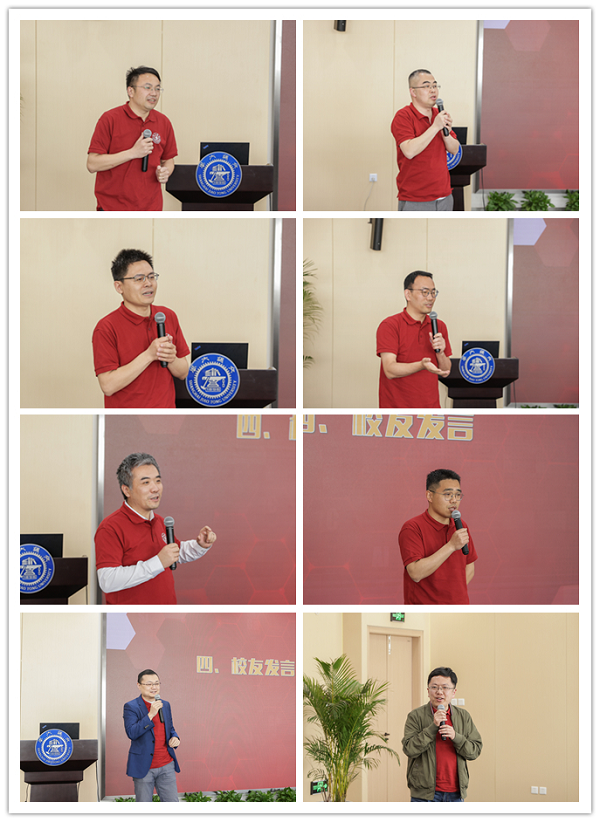 随后,吴旦、张勇、刘燕刚、赵亚平、孟庆华、张斌、李梅、韩莉八位老师由衷的感怀那些时光、希望校友们在自己的工作岗位上发光发热,继续成长,交大以你们为荣,并祝愿校友们身体健康、事业顺利,阖家欢乐。韩文奇、陈林、张炳华、钱海滨、崔晓文、邹飞、肖钰、吴孟栋八位学长作为校友代表,表达了回母校的激动之情,并对培育他们的学院和各位老师、领导表达感谢,同时祝福母校125岁生日快乐。回忆过去的二十年,他们感恩可以在这百年未有之大变局之际、国家综合国力稳步提升之时,成就自己、报答母校、回报社会,其中陈林学长作为新冠疫苗的主要供货商,鼓励大家响应国家号召,早打早安全。随后,王冲副书记代表学院聘任刘卓燕、韩文奇、邹飞、许珂四位学长为“班级理事”,希望他们可以承载着母校与班级的重托,继续关心母校建设,满怀责任与热情,为校友工作做出积极的贡献。最后,贾金平书记代表学院赠送校友们“纪念版校园卡”,感谢校友对学院发展的支持,希望校友们支持母院的教育事业发展。